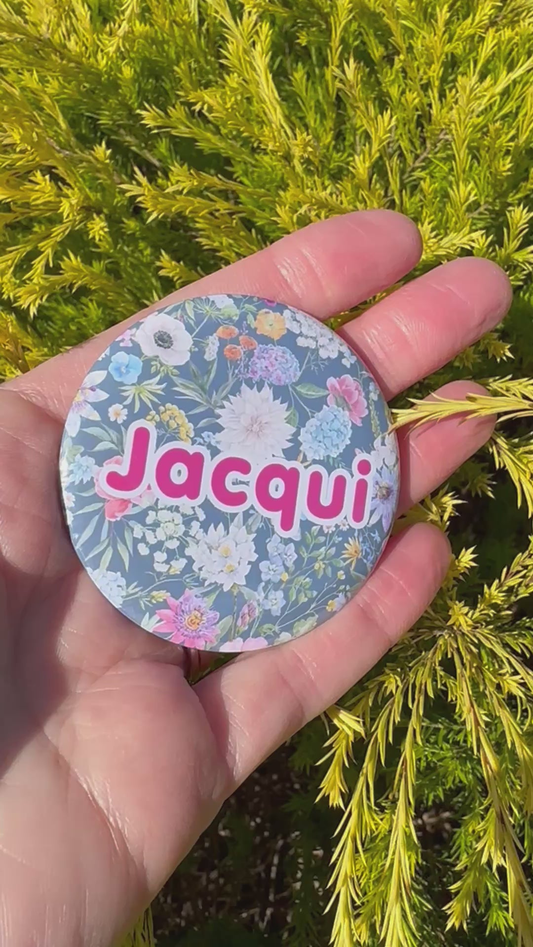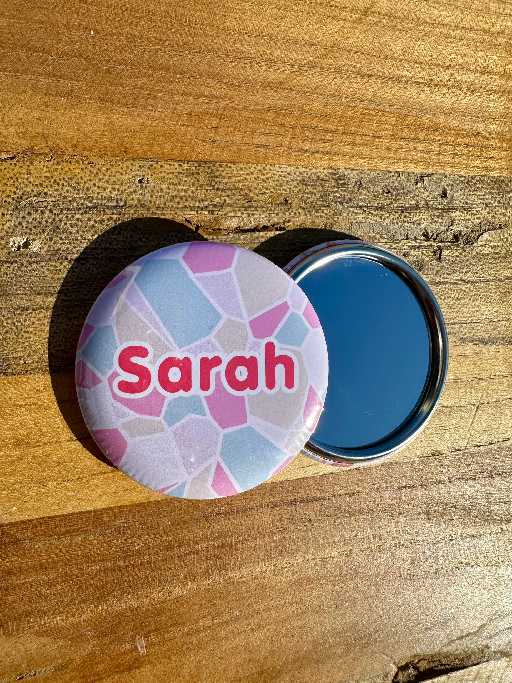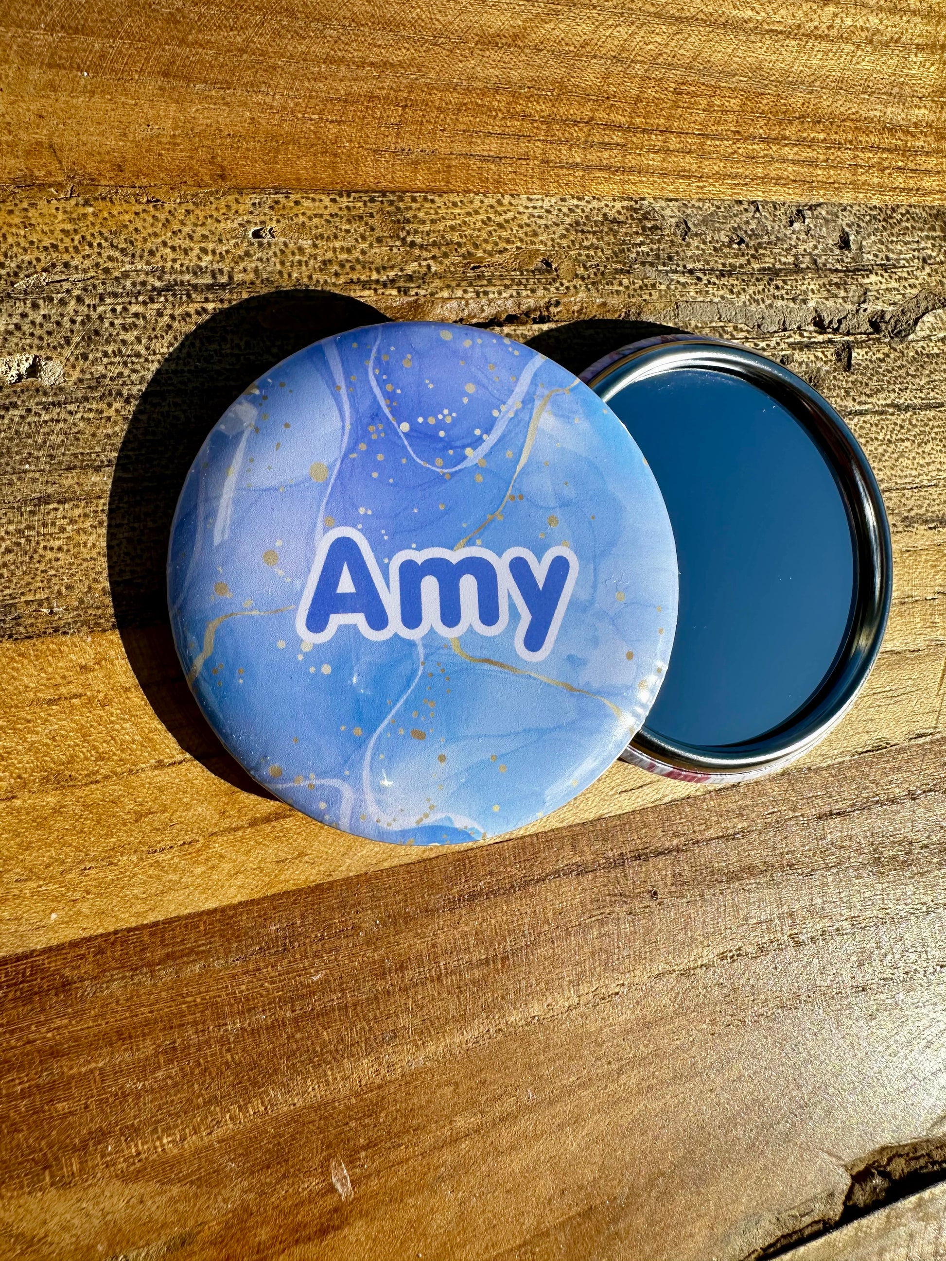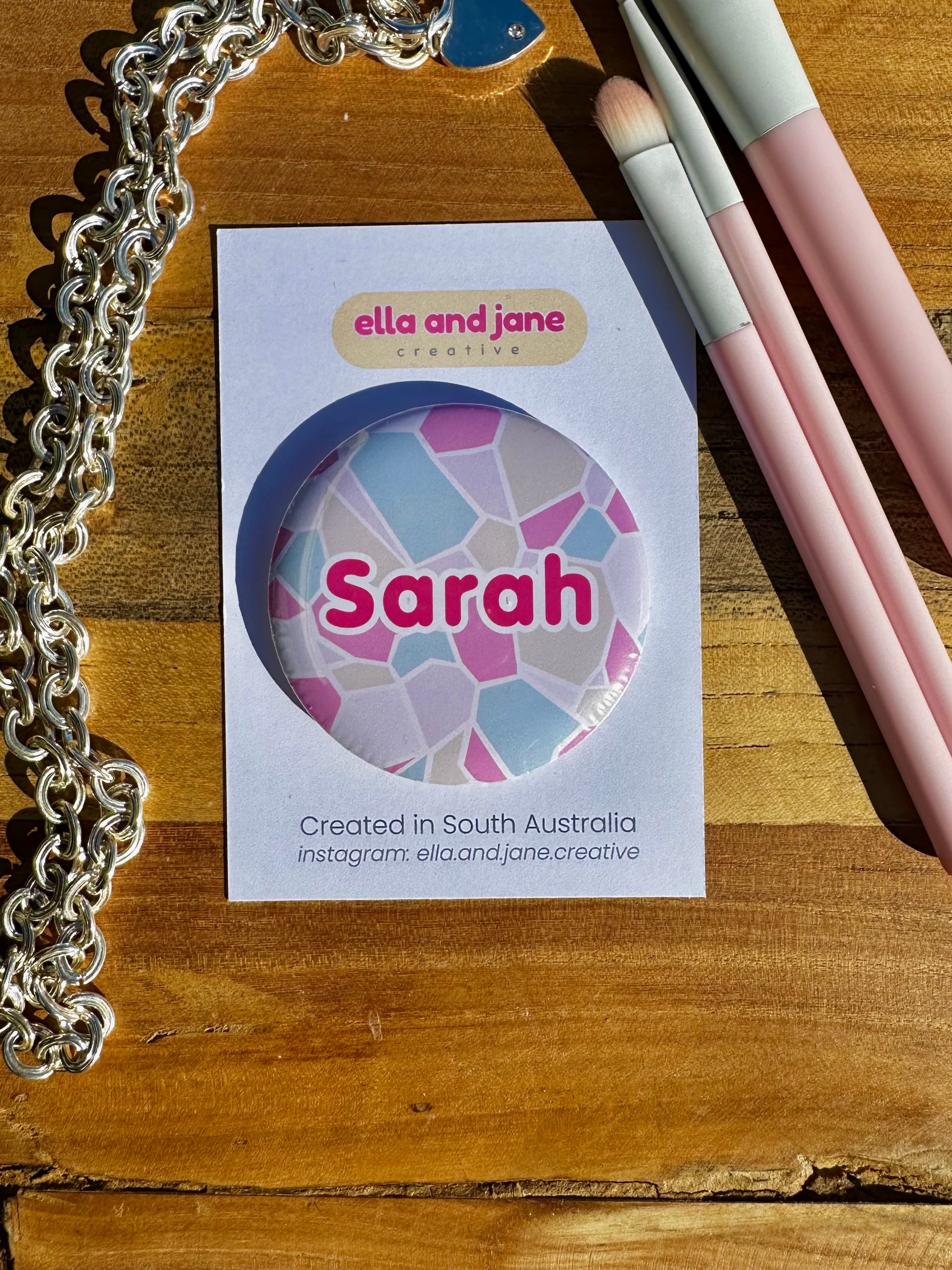Personalised abstract pocket mirrors make a charming accessory that easily fits into a purse, bag, or desk drawer.