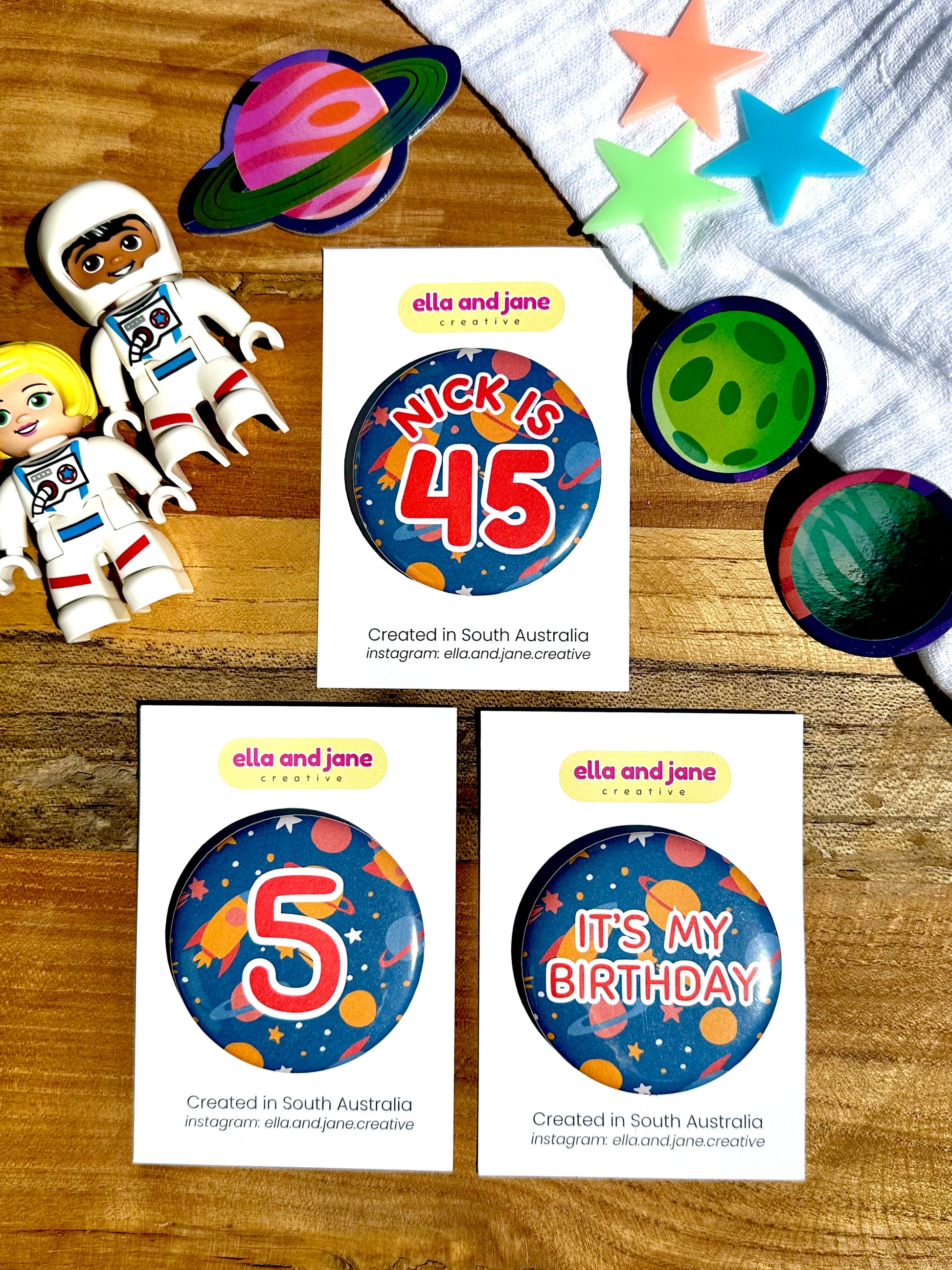 The badge is approximately 58mm in diameter and has a clear plastic coating to help protect the artwork.